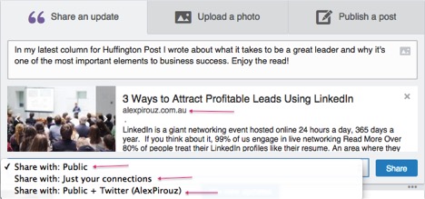 Timing: avoid spamming, the landscape of LinkedIn is different than Twitter. You should only be posting to LinkedIn 1 to 3 times a day.